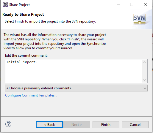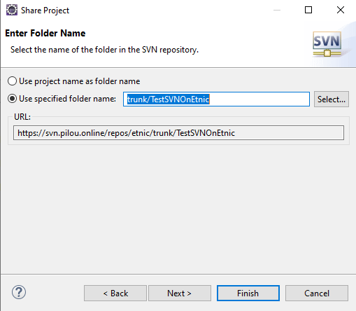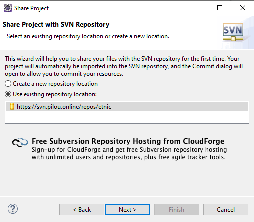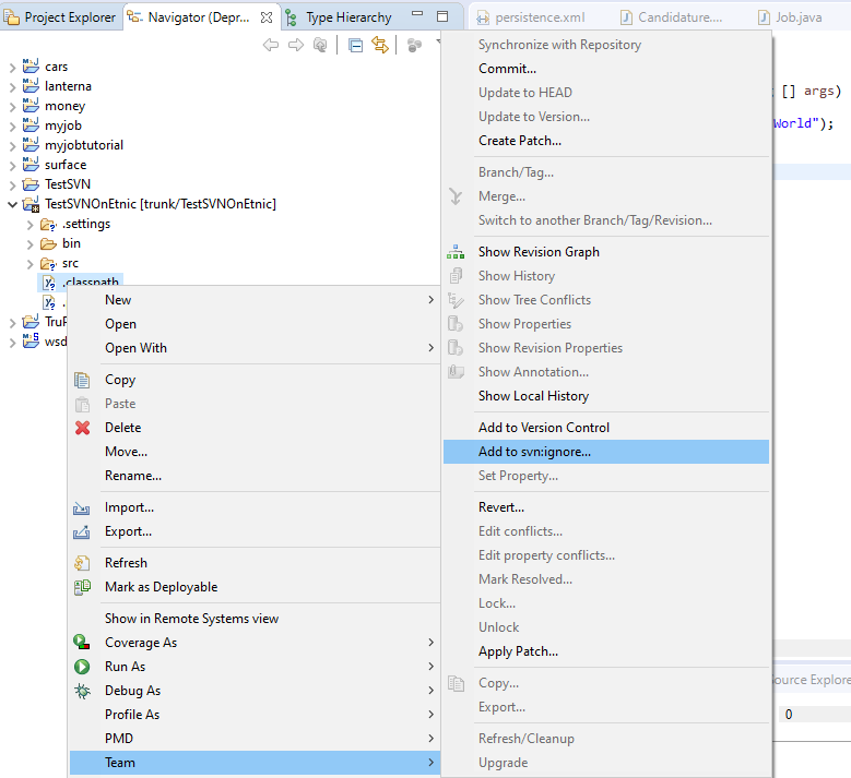Dans la perspective navigator, on sort les fichiers qui n'ont rien a faire de SVN: