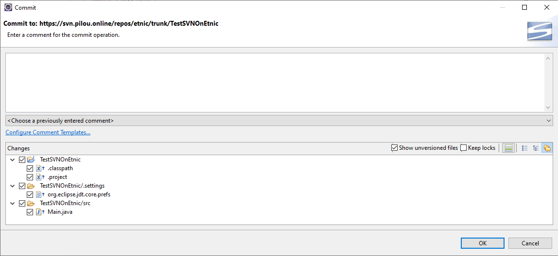 Eclipse propose la liste des fichiers a mettre dans le repo