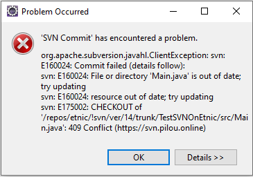 Lors d'un commit sur un fichier locker eclipse refuse le commit