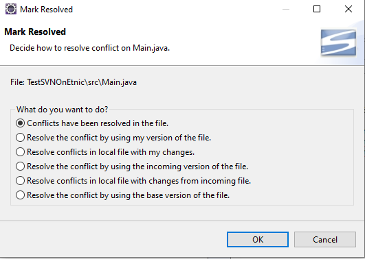Lorsque le conflit est résolue, on marque le conflit comme étant résolue