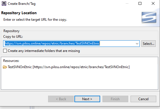 Cliquez avec le bouton droit sur le dossier de la ligne réseau, sélectionnez Equipe> Branche / Tag. Copier vers l'URL:
